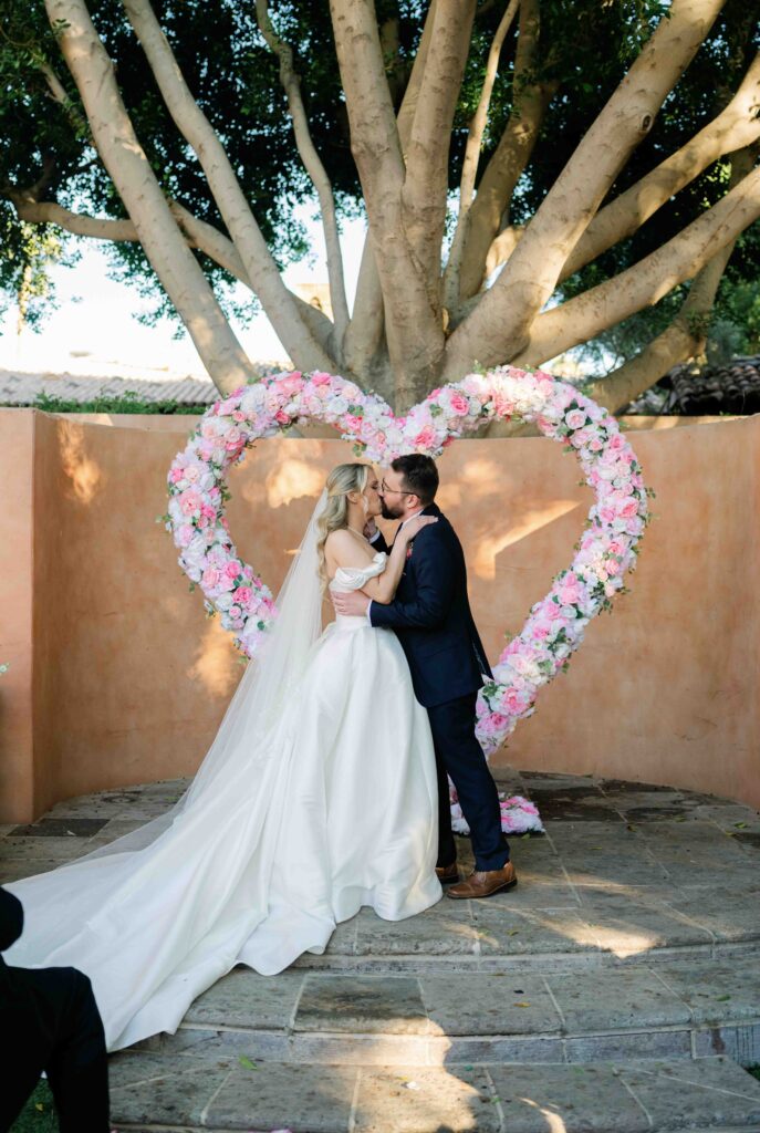 Ben and Kelly’s wedding at the Royal Palms Resort and Spa in Arizona felt like stepping into a beautiful garden party tucked away inside the desert. From the quiet getting ready moments to the candle lit dinner in the courtyard, every part of their day leaned into soft pink tones, timeless architecture and that relaxed elegance the Royal Palms is known for.