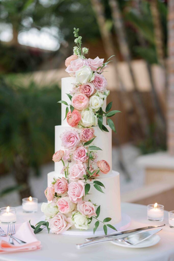For Ben and Kelly the Royal Palms perfectly matched the romantic atmosphere they envisioned for their wedding day. Their palette of pink roses and blush tones fit seamlessly into the garden setting.